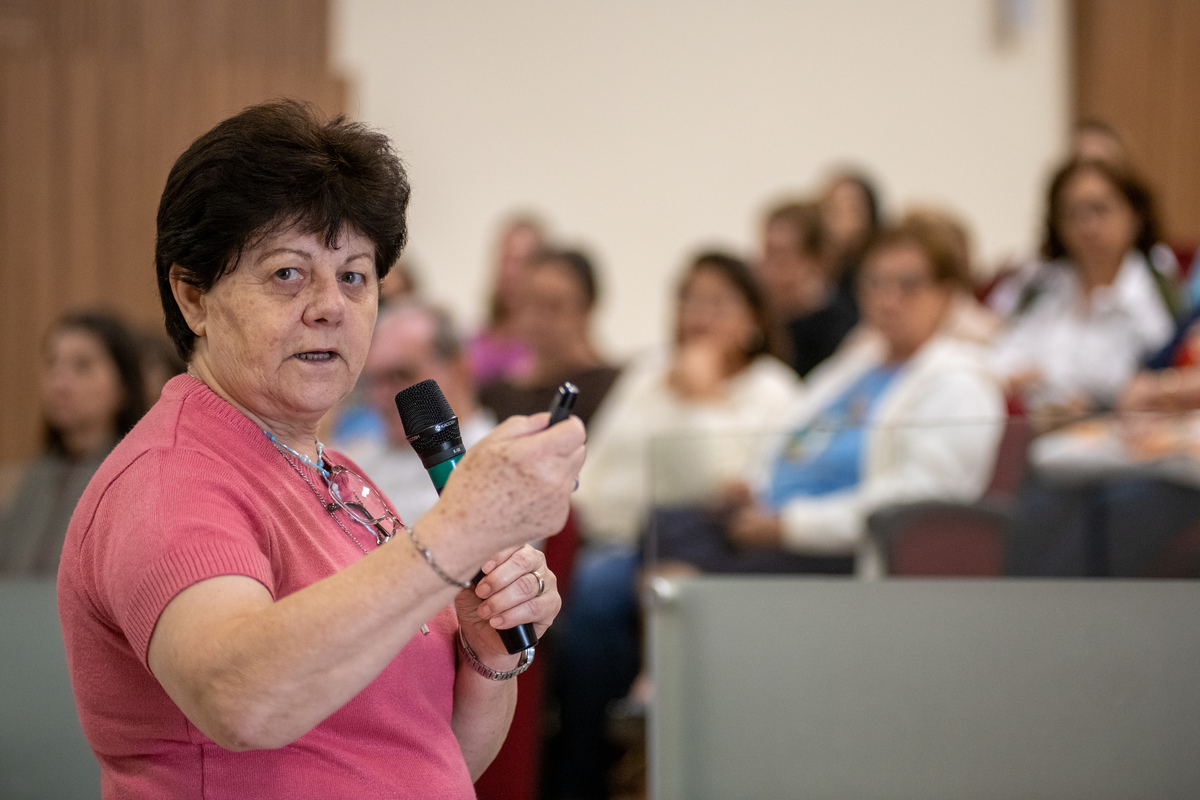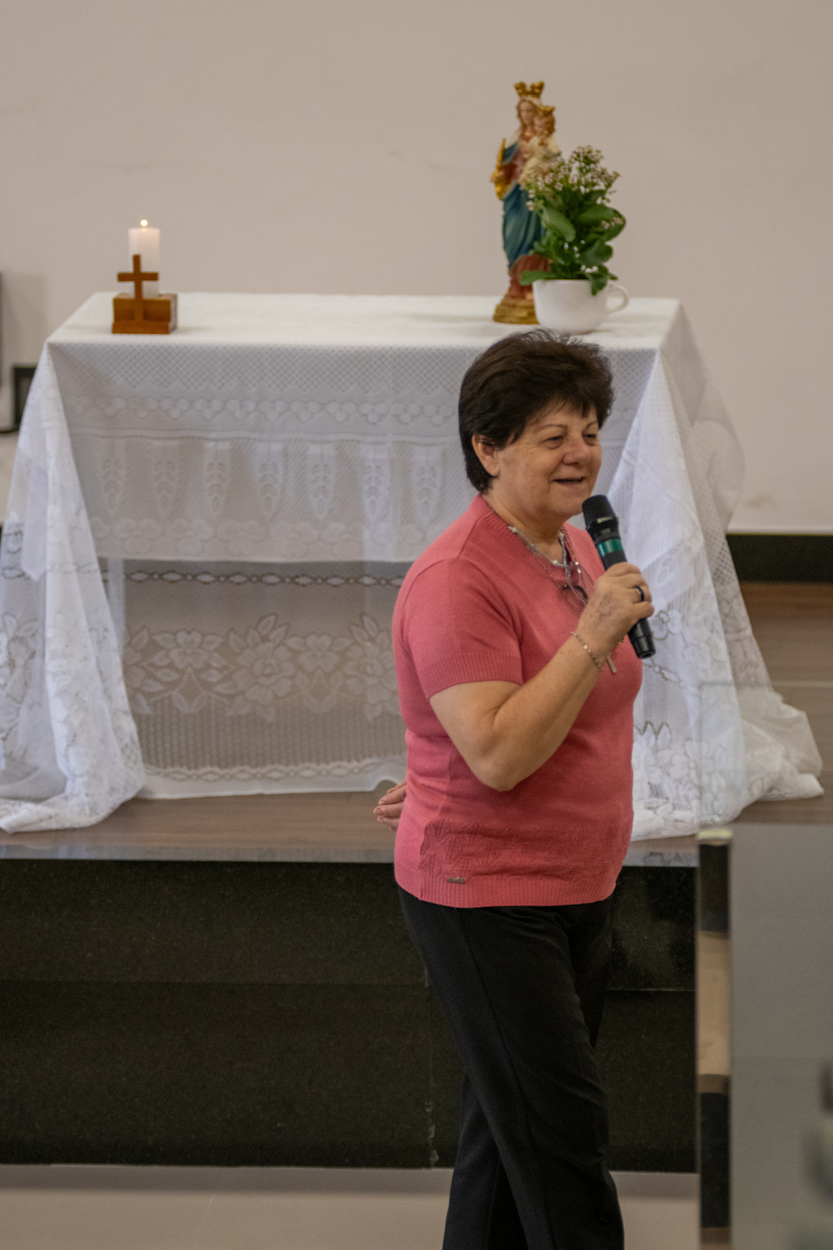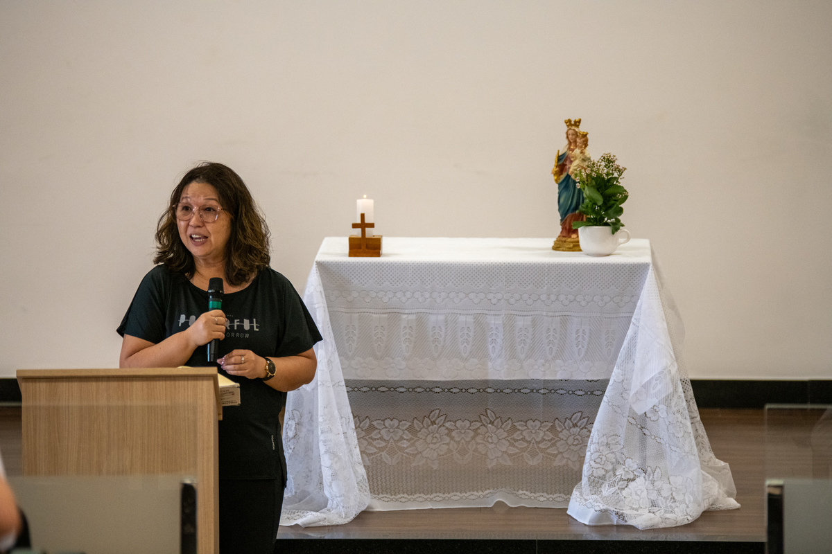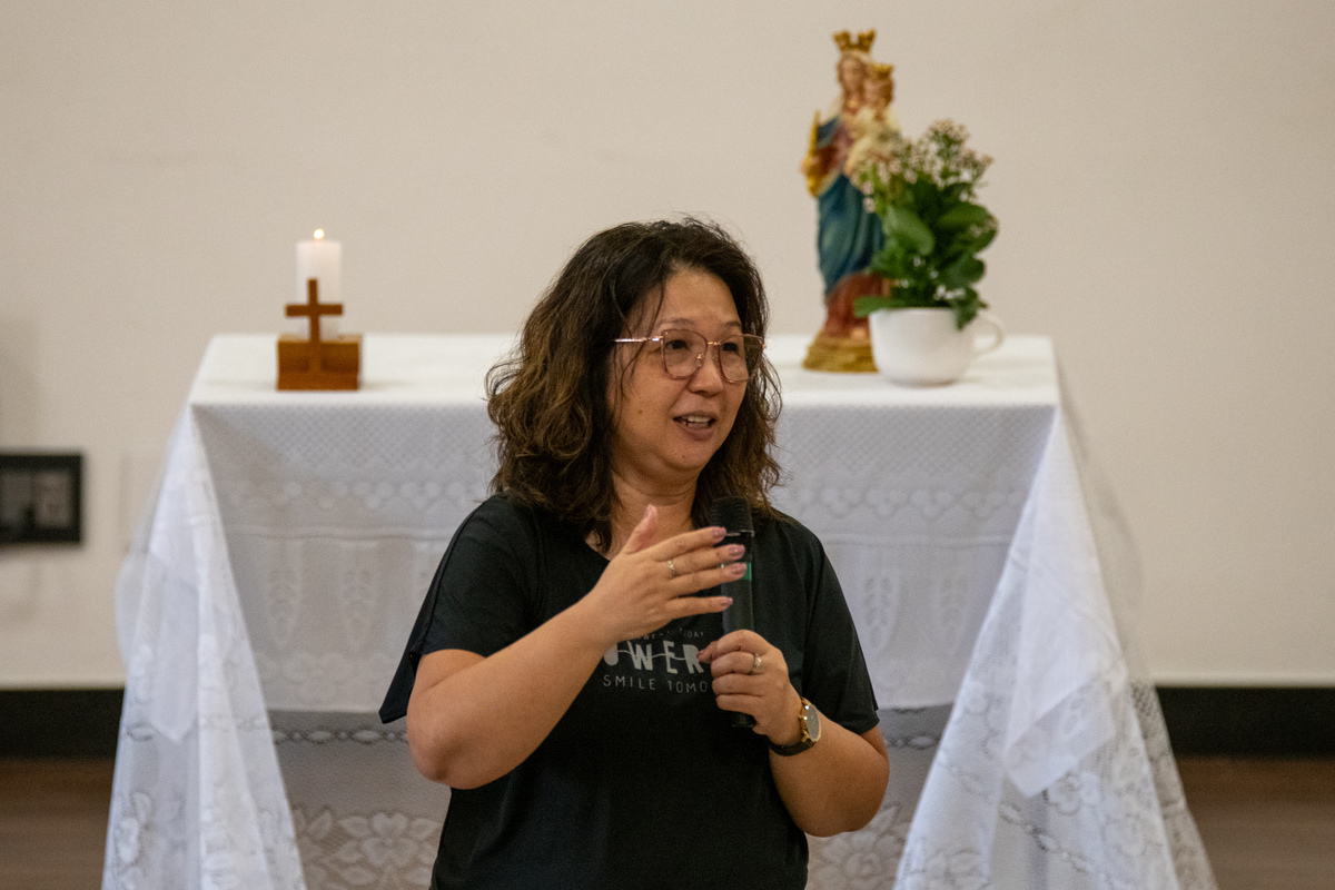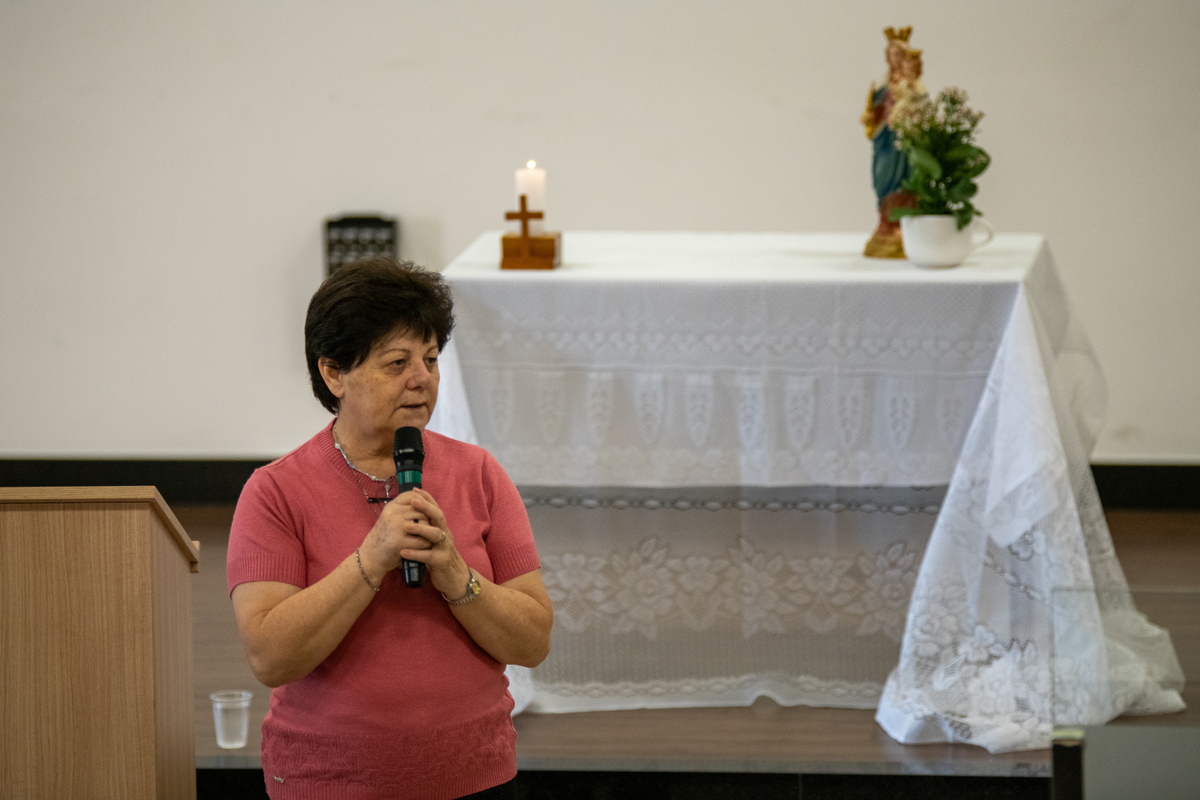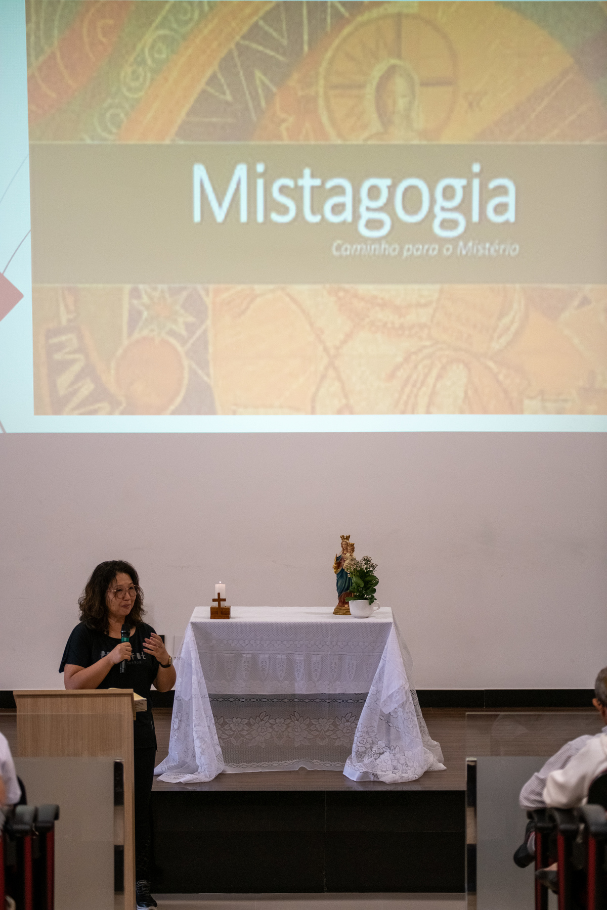Era só pra fazer algumas fotos para a Pascom (Pastoral da Comunicação) e acabei me interessando pelo assunto que foi ministrado pela Irmã Inês, Mistagogia, que tem por definição "a arte de conduzir os fiéis para dentro do ministério celebrado, revelando-o através de cada rito, gesto e símbolo".